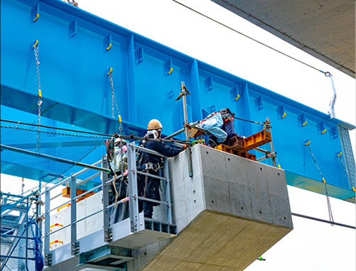 ボルトも通常のものより高い摩擦で締め付ける「高力ボルト」を使い、鉄骨をしっかりと固定していきます。